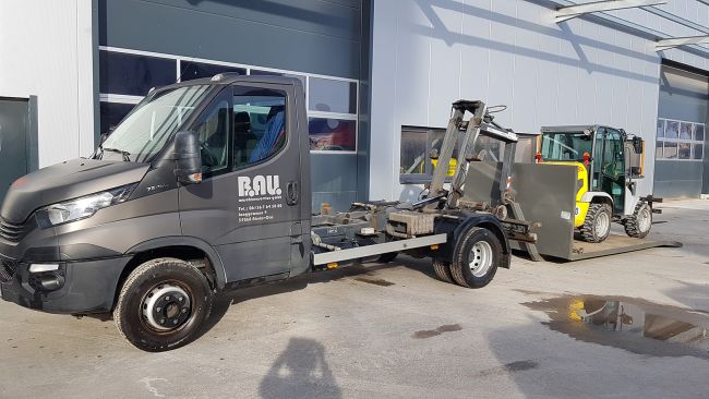 Wir transportieren Bau- und Landmaschinen, Arbeitsbühnen und Zubehör aller Art. Außerdem fahren wir mit der Genehmigung §54 auch Entsorgungsmaterial.